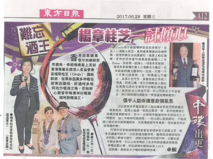 《文匯報》報道——“酒业总商会周年庆典贺回