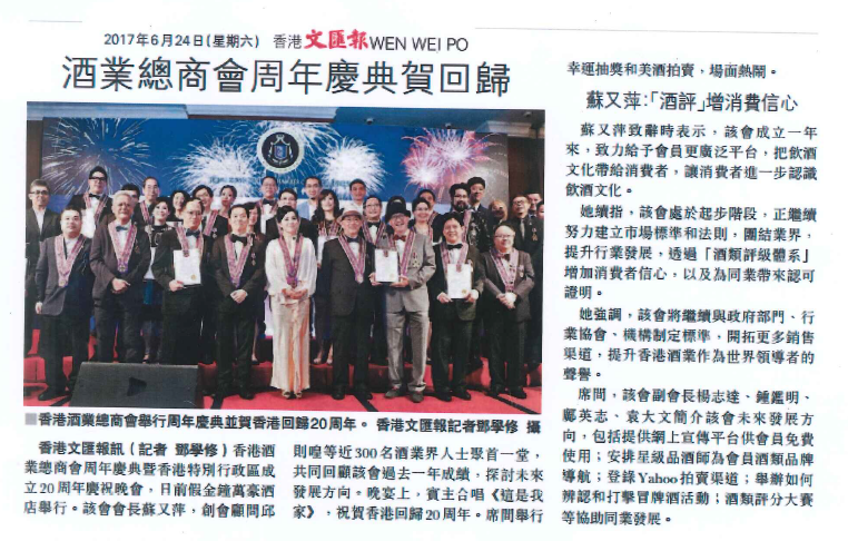 《文匯報》報道——“酒业总商会周年庆典贺回