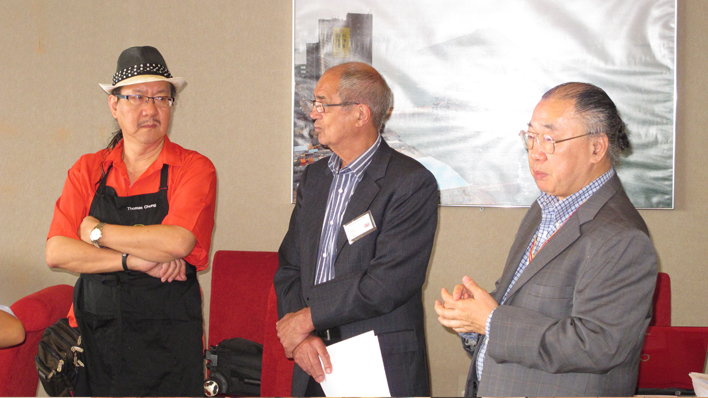 香港酒业总商会会长苏又萍小姐到贺亚洲酒类大赏晚宴,正副主席接待