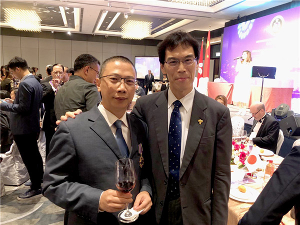 中山拉歌酒业有限公司的CEO钟监明博士,也是香港酒业总商会的副会长,当然参与协助会长苏又萍博士主持了总会的庆典仪式,当晚延开20余席,莅临的各国领事就有十多位。