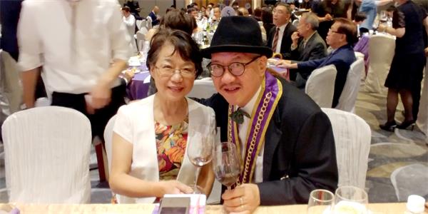 王教授在葡萄酒专业上博学多闻,教育莘莘学子,不遗余力,着作等身,这个《终身成就奖》实至名归,中山法国拉歌酒堡有限公司 C.E.O.暨该会副会长钟鉴明博士立刻上前祝贺。