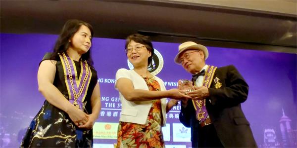 香港酒业总商会HKGCWS会长苏又萍博士联同该会创会顾问邱则喤博士向中国陕西的西北农业大学葡萄酒学院院长王华博士颁发《终身成就奖》,以表扬并感谢她对葡萄酒业的供献。