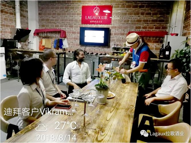 来自中东迪拜的客户 Vickram 到访中山拉歌酒堡,三和运营总经理 Tony 与外贸部部长 Edwin 热情接待,并与中山拉歌酒堡CEO钟博士于品酒室中一同品尝波尔多美酒。